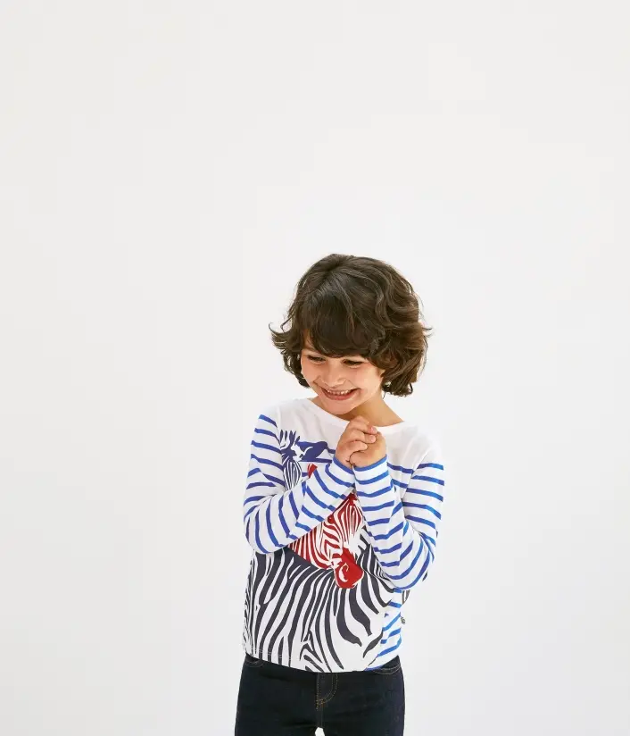 Креативна футболка урізноманітнюватимете гардероб хлопчика. Вона пошита з м'якого джерсі та прикрашена смужками та принтом зебр.