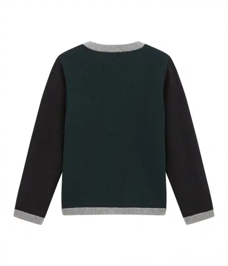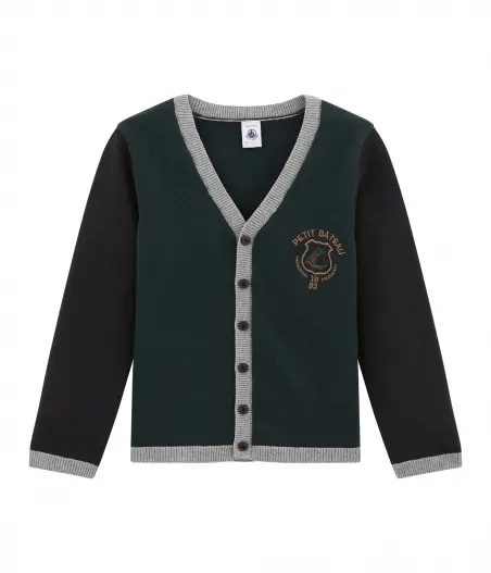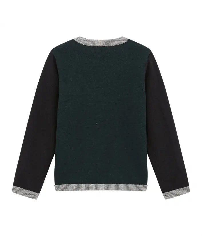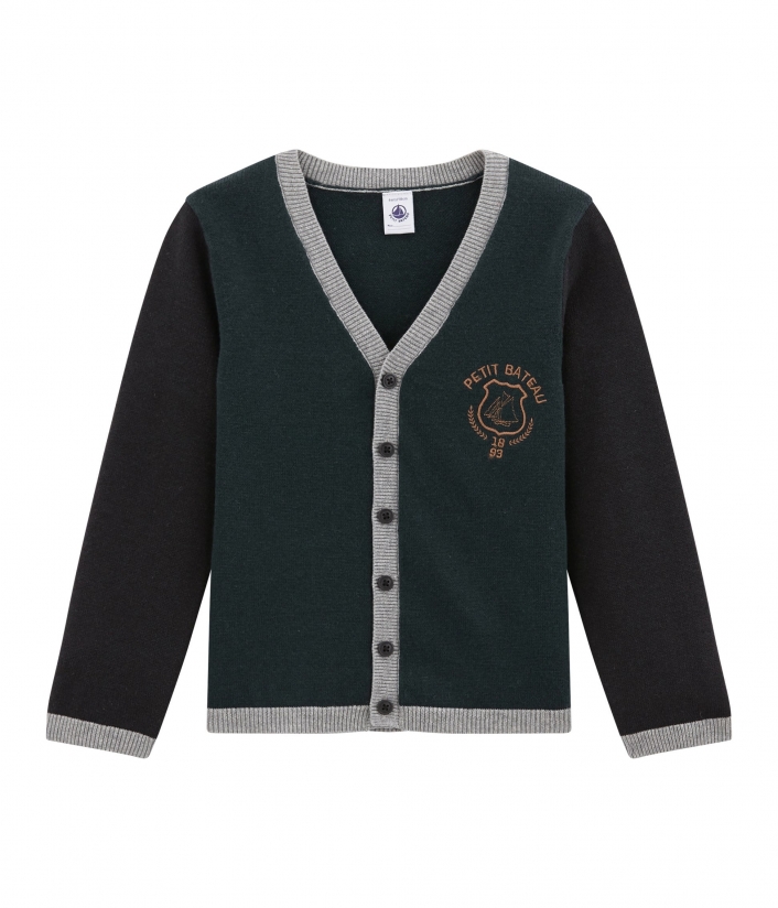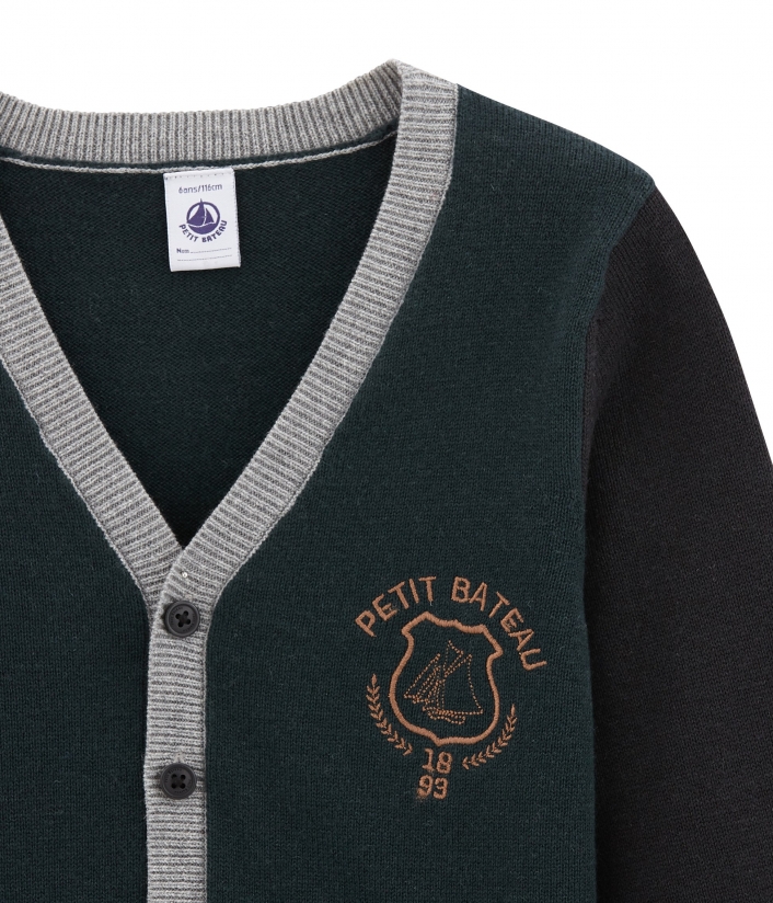 Отличный выбор для школы или колледжа. Кардиган, сшитый из мягкого и теплого шерстяного материала, поэтому обязательно согреет зимой. Он выполнен в английском стиле: гармоничное сочетание насыщенного зеленого цвета с серым, V-образный вырез горловины и стильный патч. Модный кардиган маст-хэв в гардеробе мальчика. Состав: 55% шерсть, 45% хлопок