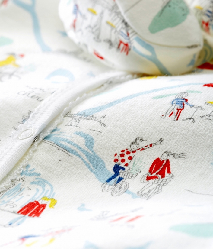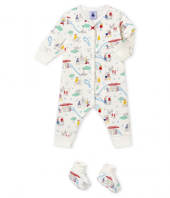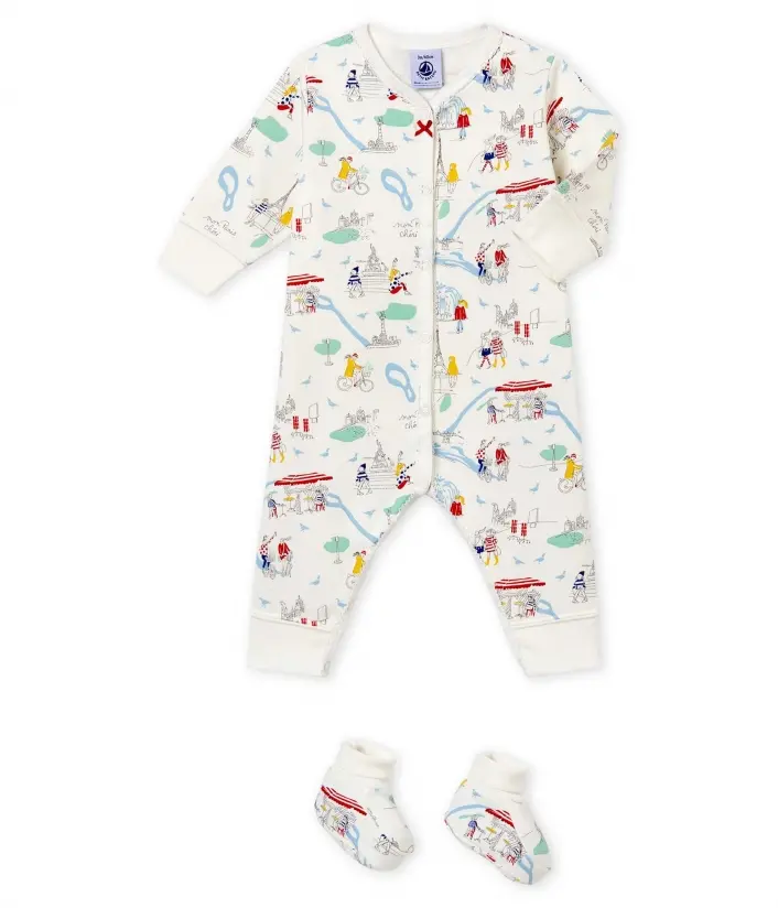 Комплект для немовляти для комфортного сну: тепла піжама з застібками на кнопочки та пінетки з принтом паризького колориту. OEKO-TEX® гарантує безпечність для шкіри. Склад: 100% бавовна