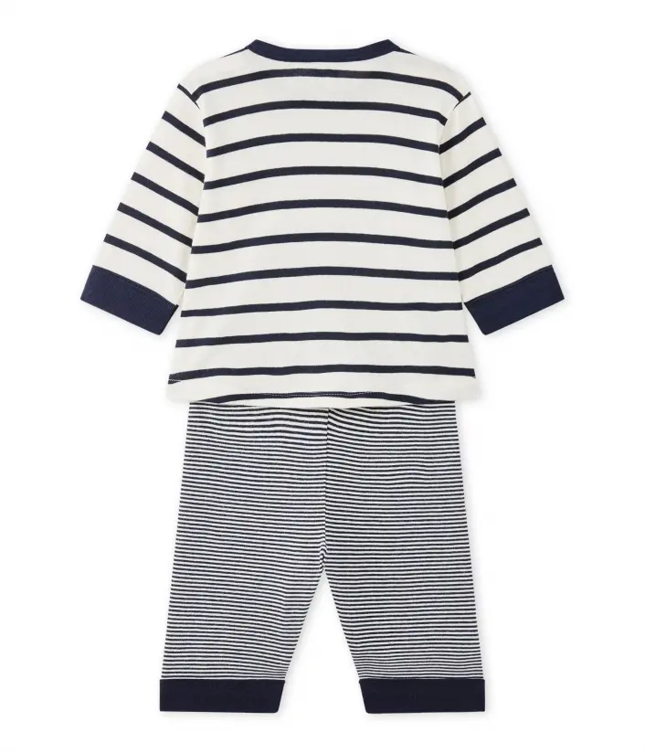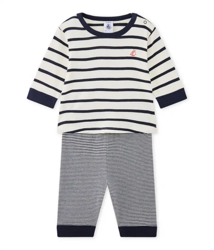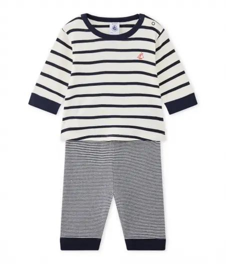 Піжама для хлопчика прикрашена класичною смужкою Petit Bateau. Пошита зі 100% бавовни - практична, м'яка та комфортна. Petit Bateau з турботою відноситься до тендітних малюків, пропонуючи одяг з найкращого сертифікованого матеріалу OEKO-TEX®, який гарантує якість та абсолютну безпечність. Склад: 100% унікальна бавовна