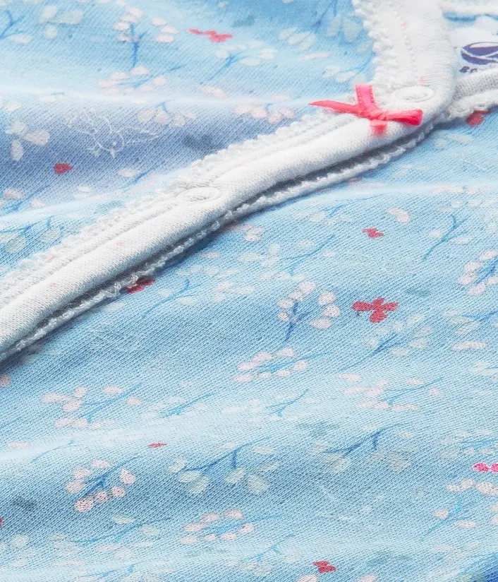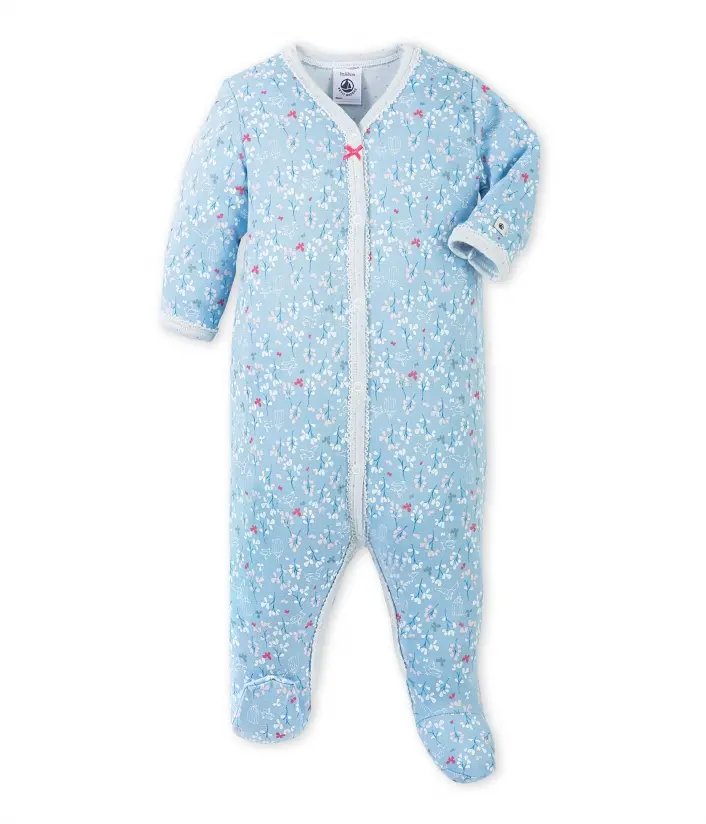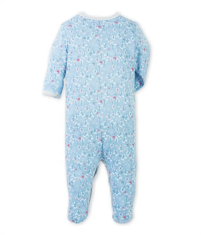 Розкішна піжама з довгими рукавами і закритими ніжками для дівчинки, виготовлена з бавовняного трикотажу з гарним квітковим принтом. Піжама має зручні застібки для комфортного та швидкого перевдягання дитини. Матеріал: 75% бавовна, 25% модал.