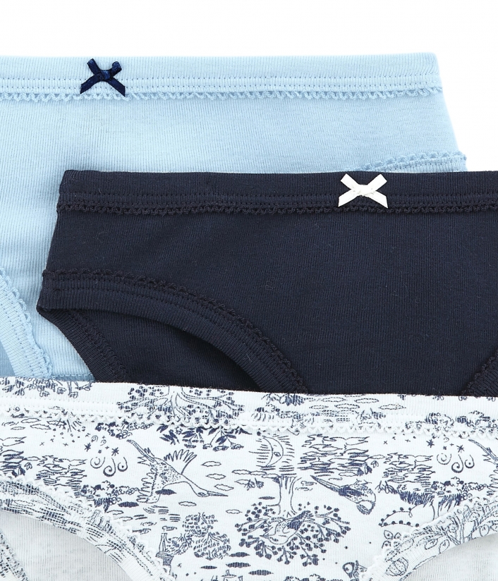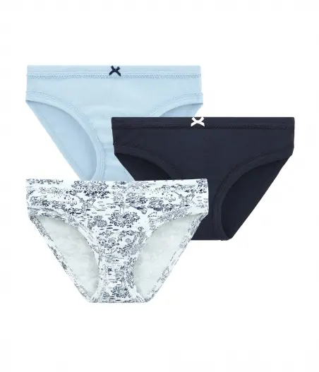 У наборі троє трусів: однотонні з бантиком та з малюнком. Чудово пасуватимуть з майкою чи футболкою, що має схожу кольорову гаму. OEKO-TEX® гарантує якість та абсолютну безпечність. Склад: 100% унікальна бавовна