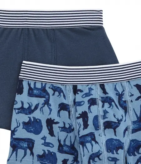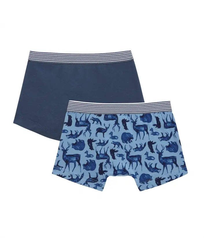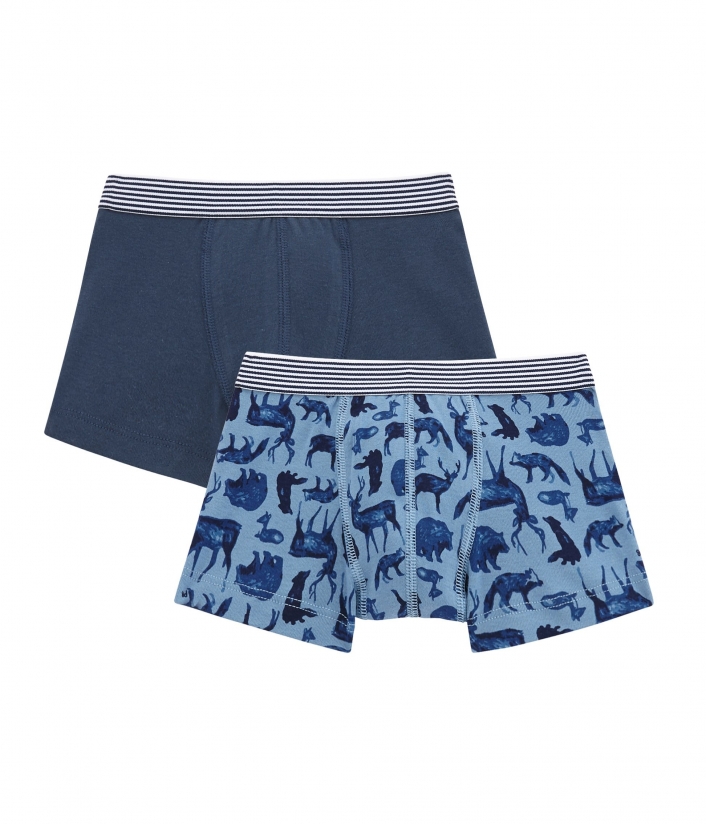 У наборі двоє трусів-боксерів: однотонні, з принтом різноманітних звірів. Вони пошиті з бавовняної тканини Petit Bateau, яка відмічена етикеткою OEKO-TEX®(безпечна, м'яка та еластична). Чудово пасуватимуть з футболкою чи майкою, що має схожу кольорову гаму. Склад: 100% унікальна бавовна