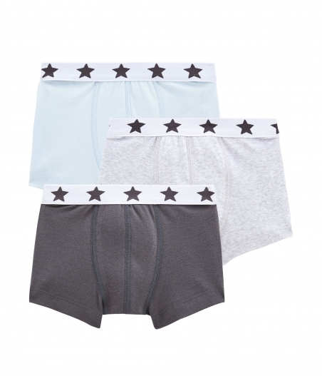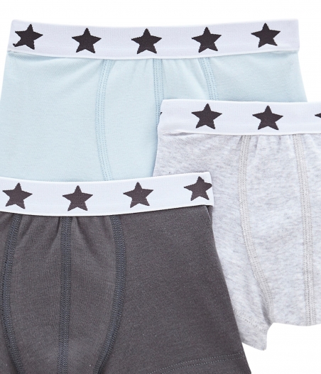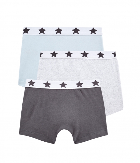 У наборі троє трусів-боксерів пастельних відтінків. Еластичний пояс декорований принтом зірочок. Вони пошиті з бавовняної тканини Petit Bateau, яка відмічена етикеткою OEKO-TEX®(безпечна, м'яка та еластична). Чудово пасуватимуть з футболкою чи майкою, що має схожу кольорову гаму. Склад: 100% унікальна бавовна
