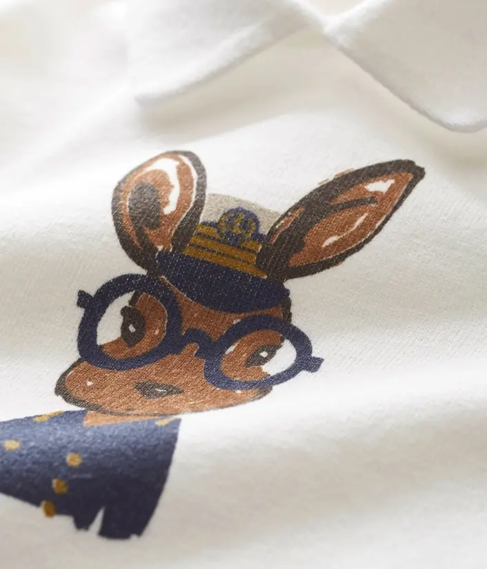 Новинка - лонгслів-поло для хлопчика! Пошитий із бавовни. Прикрашений чарівним принтом "капітана кролика". Рекомендуємо поєднувати з брюками та темно-синьою курткою. Склад: 100% бавовна