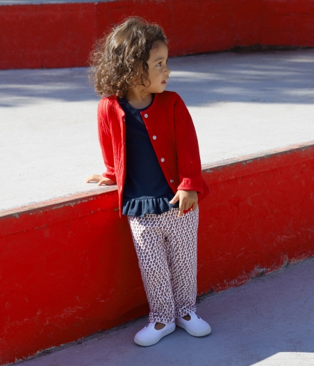 • Штанці з квітковим принтом для дівчинки. • Еластичний пояс у смужку. • Брюки мають цікавий крій знизу для додаткової привабливості. • Дві кишені ззаду. Одна з них прикрашена традиційною вишивкою вітрильника. • У наявності кардиган до брючок. Дивіться розділ "Светри, кардигани". Склад: 100% бавовна/ 91% бавовна, 5% фібра, 4% еластан