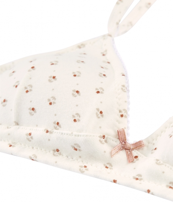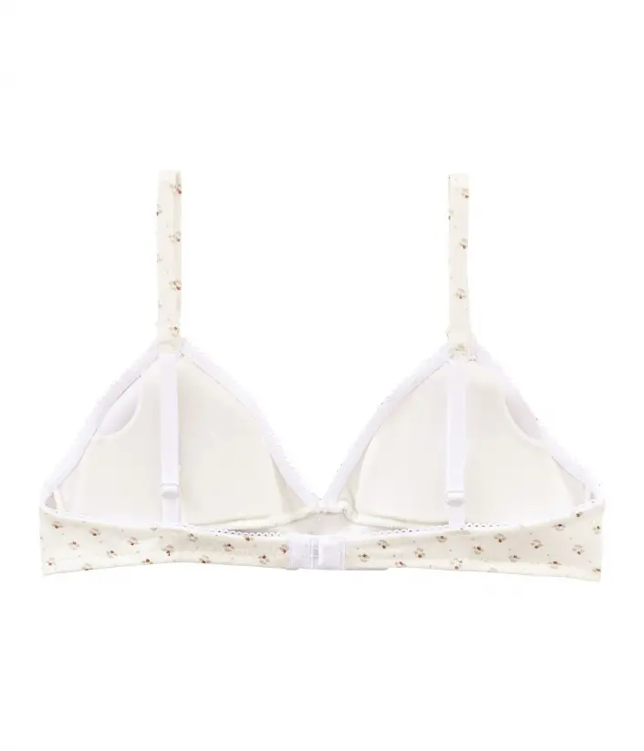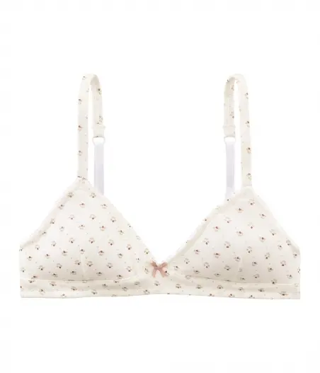 • Комфортний трикотажний бюстгальтер без каркасу. • Чудовий вибір як для дівчини, так і для жінки. • Бретелі знімні і регульовані. • Прикрашений кольоровим принтом квітів. • Підберіть собі трусики, що пасуватимуть до бюстгальтера. • Товар сертифікований OEKO-TEX® Standart 100, що надає впевненості у безпечності та якості одягу. • Гіпоалергенність - матеріал не викликає подразнень шкіри, та будь-яких інших симптомів алергічної реакції. Склад: 93% бавовна/ 7% еластан
