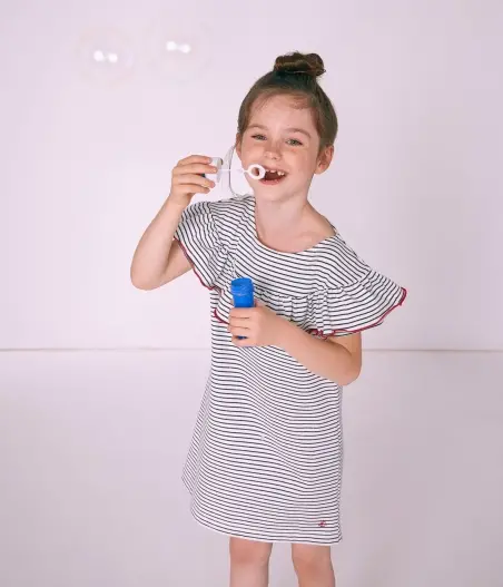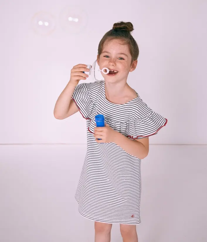 • Сукня у смужку з коротким рукавом. • Прямий крій. • Товар сертифікований OEKO-TEX® Standart 100, що надає впевненості у безпечності та якості одягу. Склад: 100% бавовна
