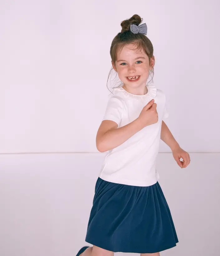 • Футболка з натуральної бавовни. • Прикрашена чарівним комірцем. • Зручна застібка на кнопку ззаду. • Ідеально підійде до шкільної форми. • Товар сертифікований OEKO-TEX® Standart 100, що надає впевненості у безпечності та якості одягу. Склад: 100% бавовна
