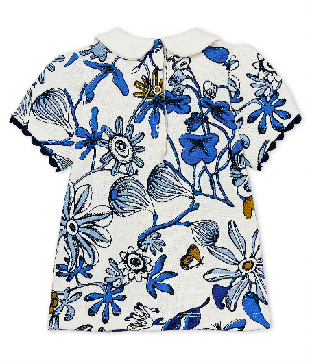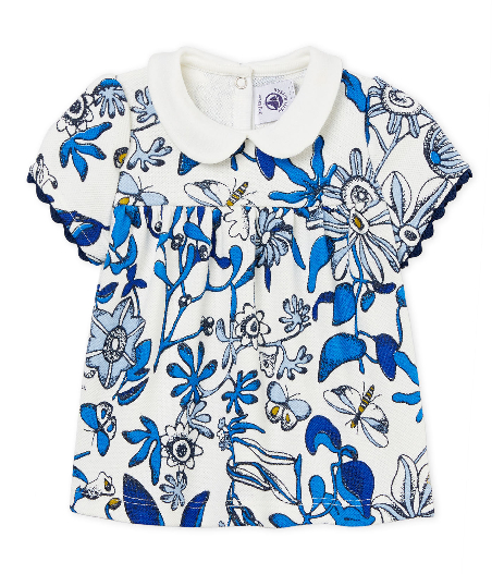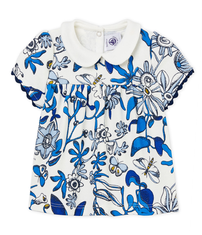Мила блуза з комірцем для дівчинки. Чудовий квітковий принт додає цьому виробу особливого шарму. Застібки на кнопочки ззаду. Товар сертифікований OEKO-TEX® Standart 100, що надає впевненості у безпечності та якості одягу. Склад: 100% бавовна
