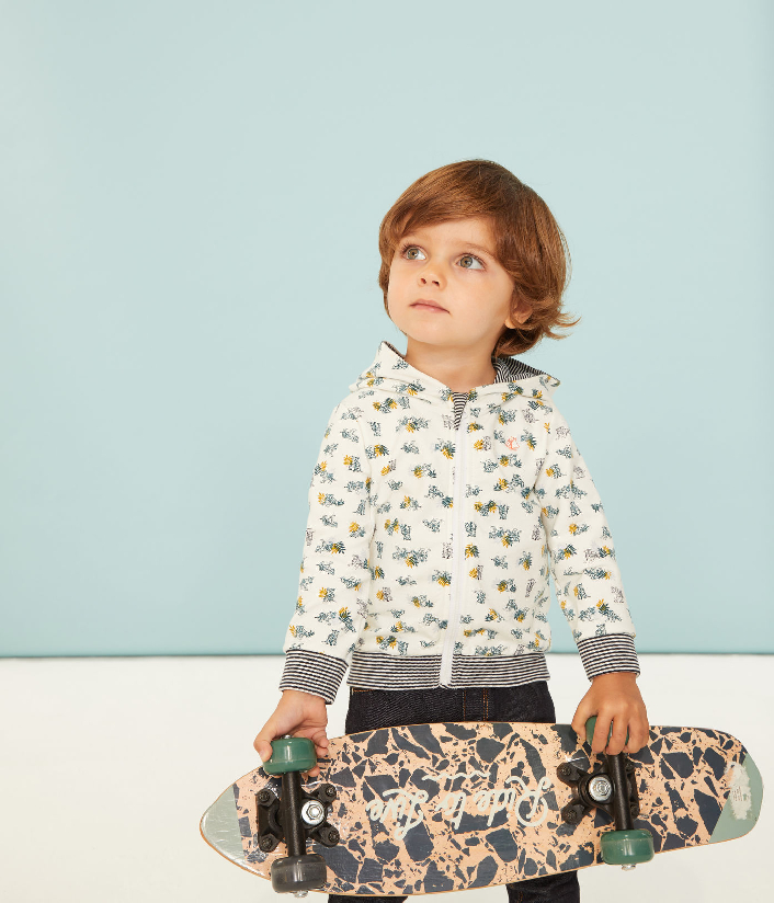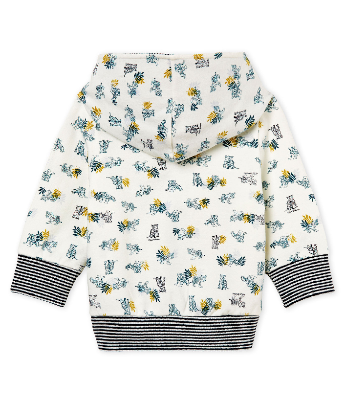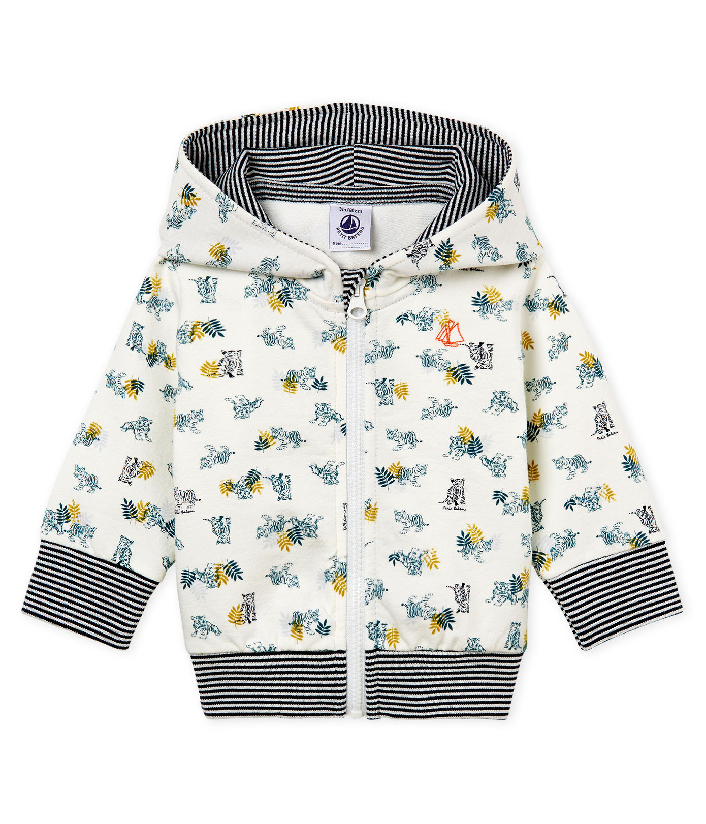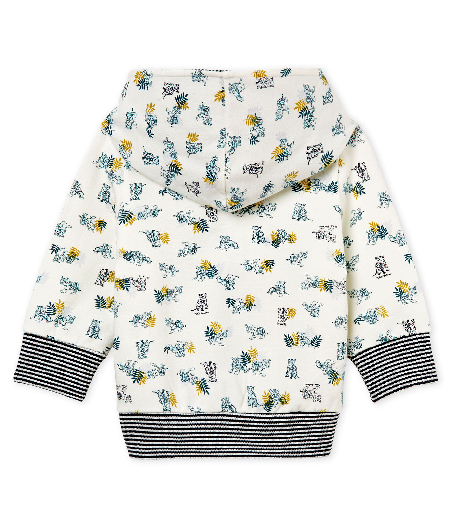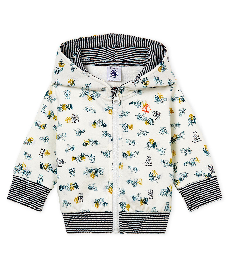 Худі для хлопчика. Застібається на блискавку. Виріб прикрашений трендовим анімалістичним принтом та знаковою смужкою Petit Bateau. Склад: 97% бавовна, 3% еластан / 100% бавовна