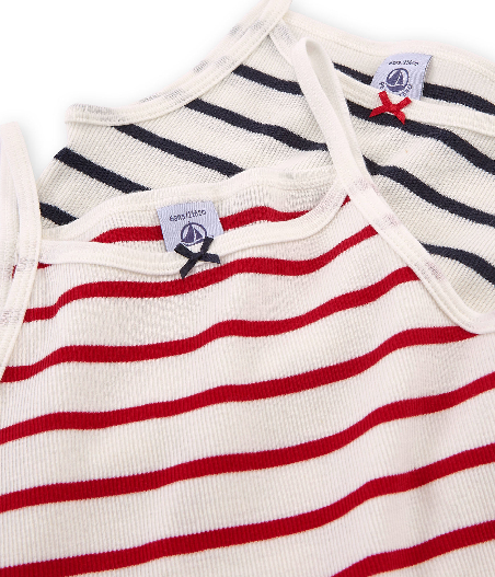 У наборі дві бавовняні майки Petit Bateau, що були розроблені до 100-річчя з дня винаходу спідньої білизни Petit Bateau. Чудово пасуватимуть з трусиками, що мають схожу кольорову гаму. OEKO-TEX® гарантує якість та абсолютну безпечність. Склад: 100% бавовна