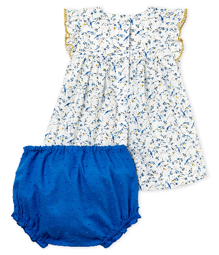 Сукня з цікавим принтом фауни та однотонні трусики-панталони. Плаття прикрашене вітрильником Petit Bateau спереду, а ззаду застібається на кнопочки для зручнішого переодягання. Товар сертифікований OEKO-TEX® Standart 100, що надає впевненості у безпечності та якості одягу. Склад: 100% бавовна