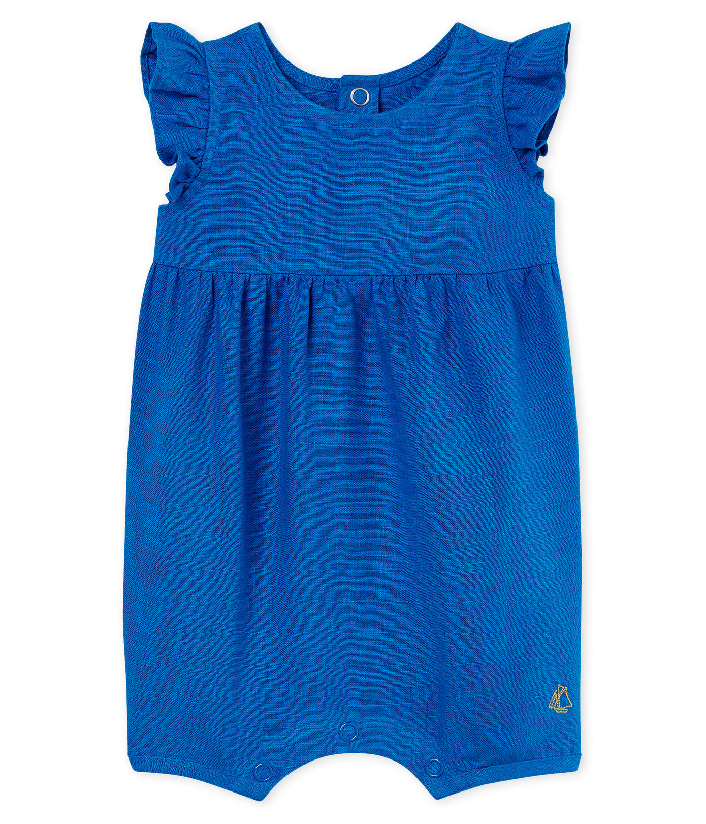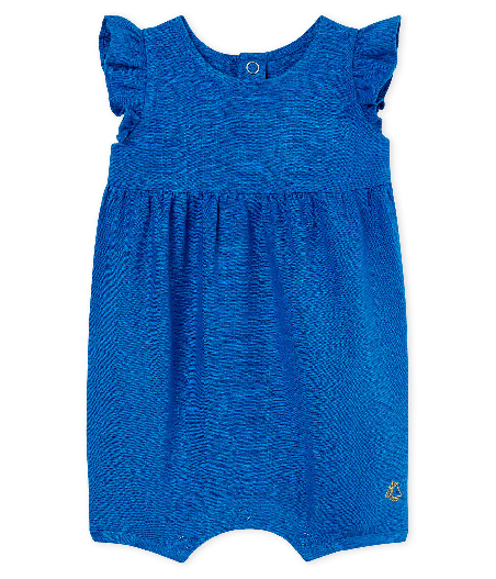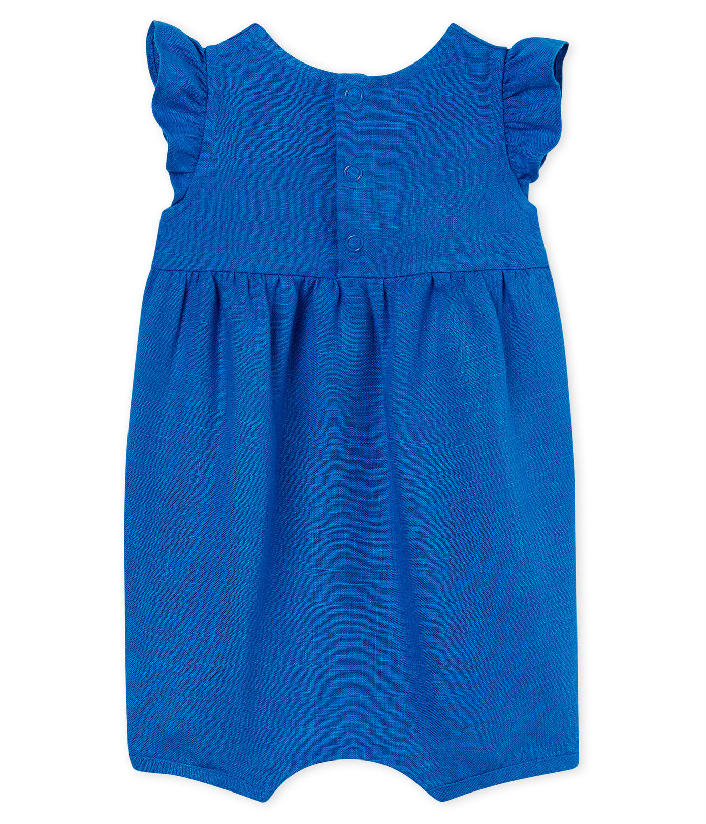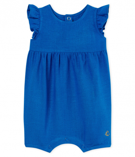 Льняний комбінезон для дівчинки. Гарні рюші та рукава-крильця прикрашають виріб. Застібки на кнопочки ззаду та між ніжками. Чудовий вибір для приємних літніх прогулянок. Склад: 100% льон