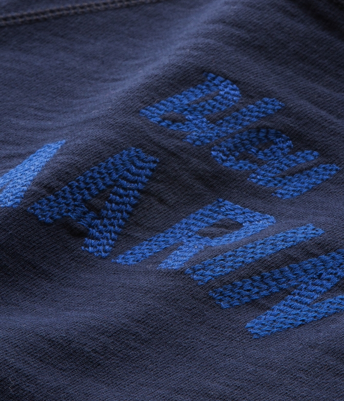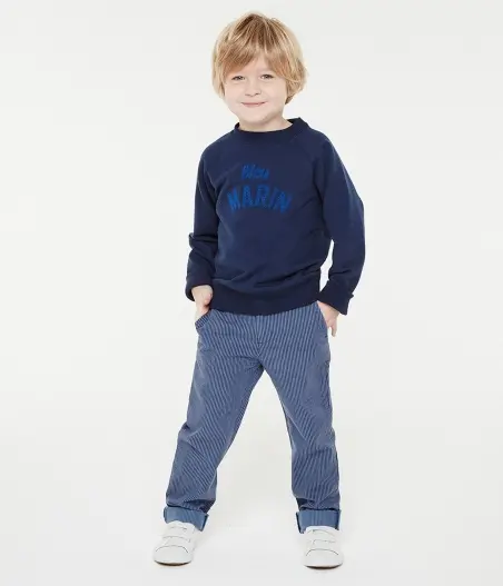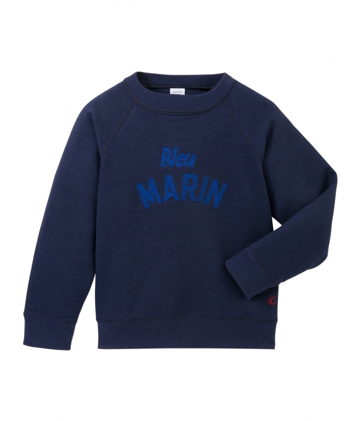 Свитшот для мальчика, изготовленный из мягкой фланели. Свитшот украшен вышивкой "Bleu marin" на груди. Материал: 100% хлопок.