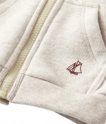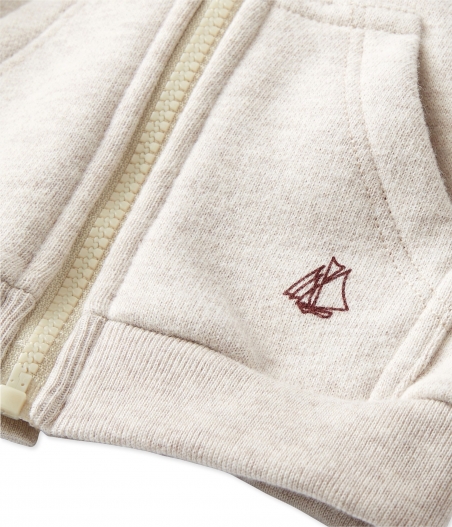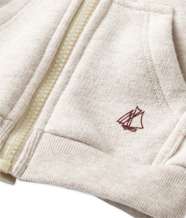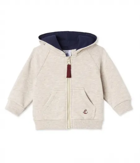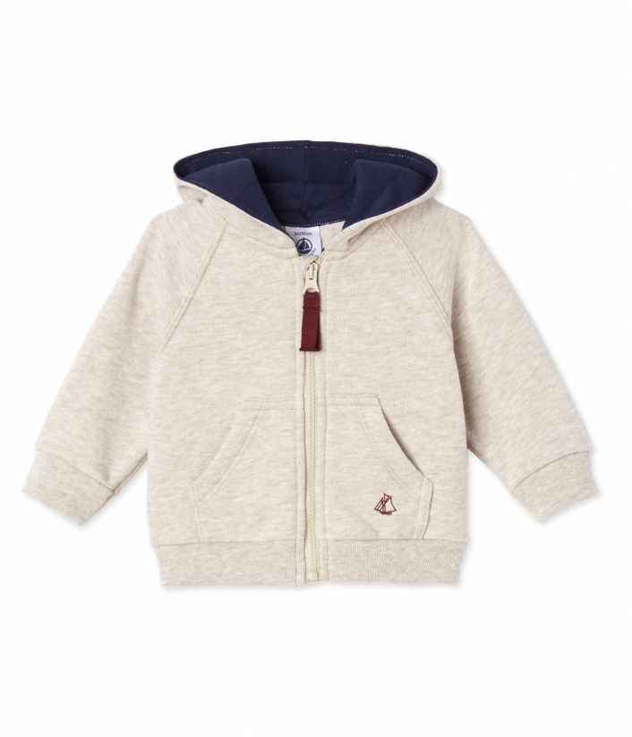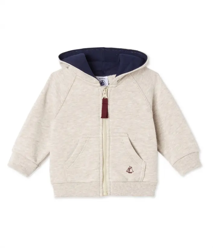 Кардиган з капюшоном для хлопчика, оздоблений застібкою-блискавкою. Кардиган має просторі кишені "кенгуру". Матеріал: 100% бавовна.