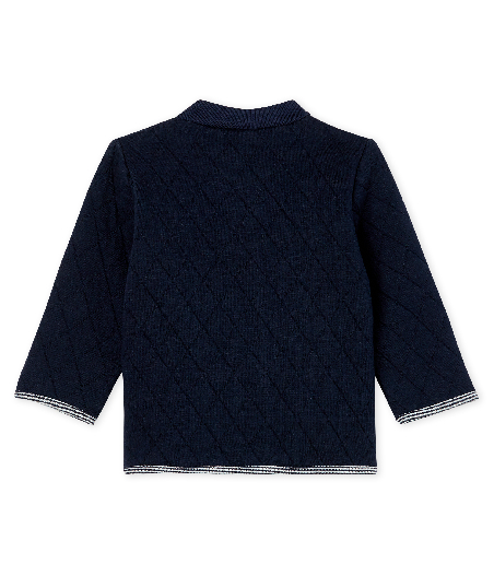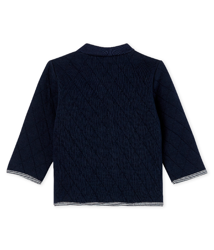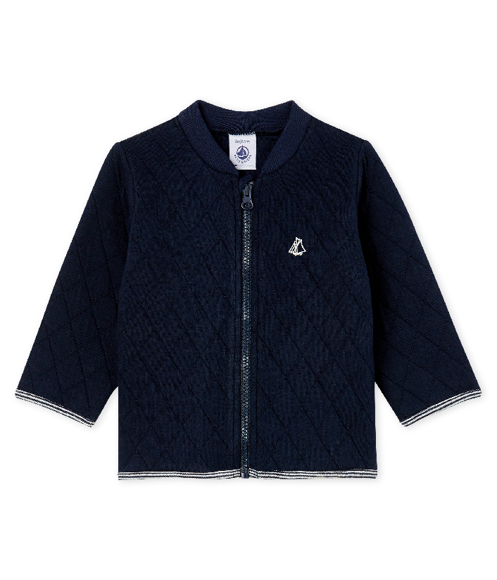 Кардиган пошитий із теплого бавовняного трикотажу. Контрастна смугаста окантовка горловини, рукавів та нижнього краю виробу чудово підкреслює його. Кардиган застібається на блискавку. Склад: 75% бавовна, 25% поліестер / 100% бавовна