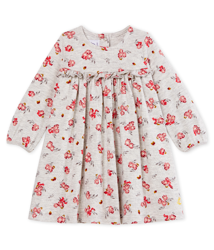 Трикотажное платье с цветочным принтом для младенца. Застежка на кнопочки сзади. Состав: 100% хлопок