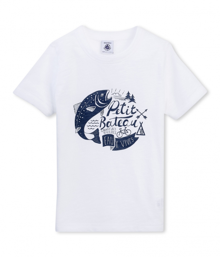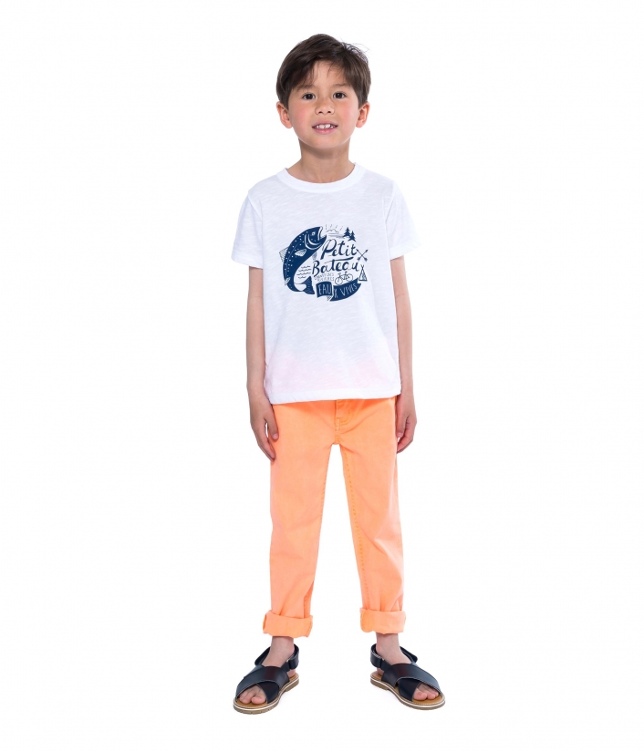 Футболка з короткими рукавами для хлопчика. Цю футболку дуже легко поєднувати з різним вбранням. Виготовлена з м'якого та легкого трикотажу, прикрашена малюнком. Ця футболка для хлопчика ідеально підходить для теплої погоди. Матеріал: 100% бавовна.