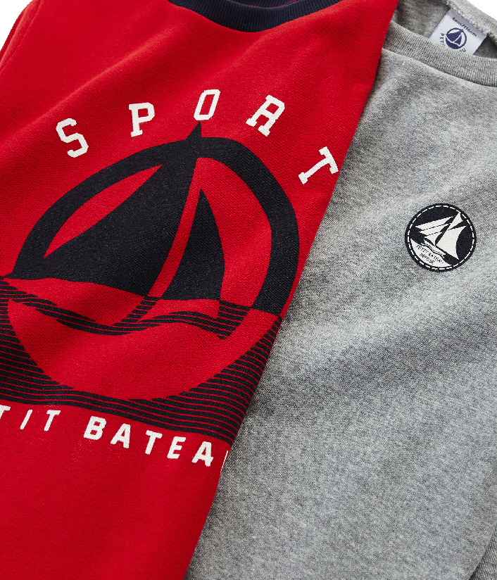 В наборе две футболки. Они сшиты из хлопчатобумажной ткани Petit Bateau, которая отмечена этикеткой OEKO-TEX®. Состав: 100% хлопок