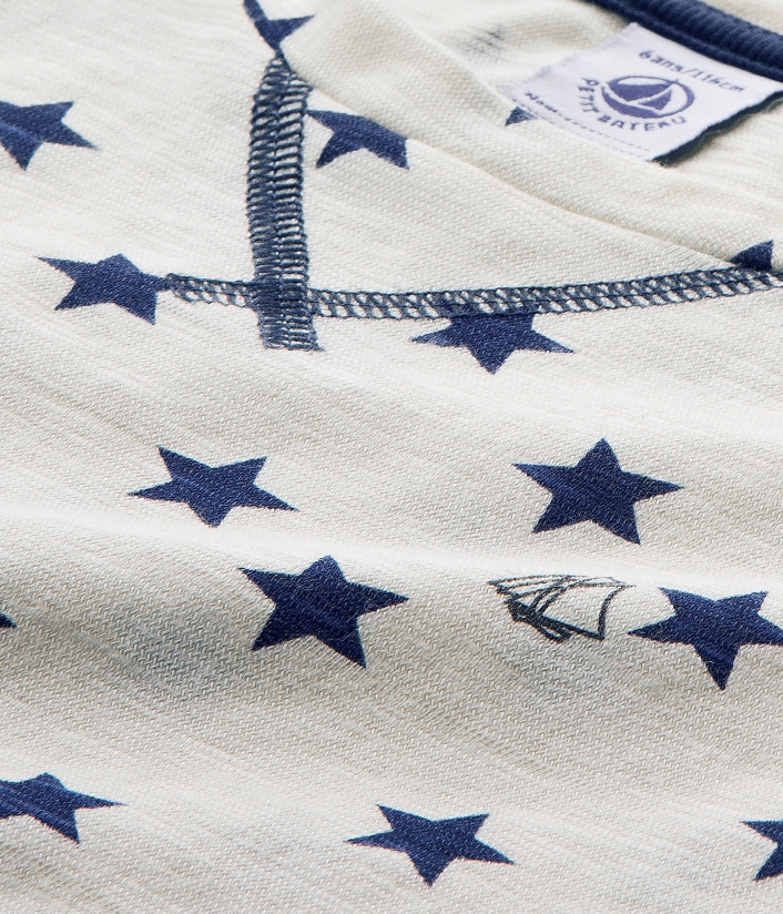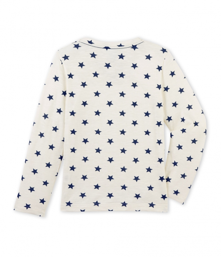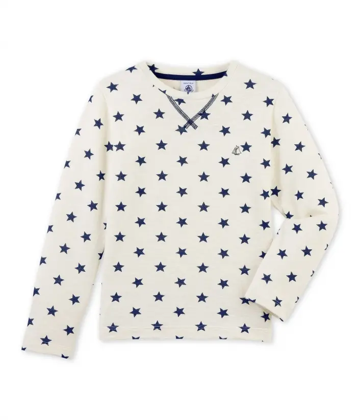 Футболка з довгими рукавами для хлопчика, виготовлена з трикотажу з зірковим принтом. Матеріал: 100% бавовна.