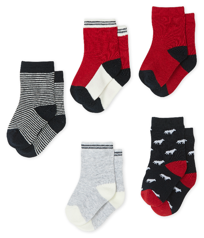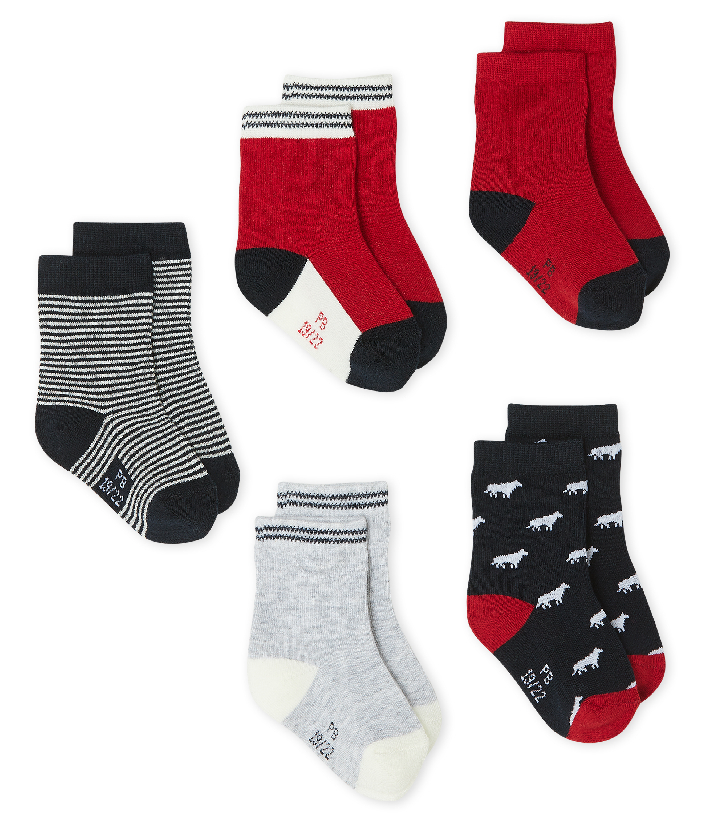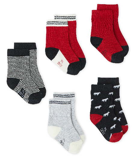 Подарочный набор с пятью парами носков. Пять пар разноцветных носков. Длина стопы: 15/18 = 7,4-8,3 см / 19/22 = 9,7-10,6 см / 23/26 = 18,8-14,6 см. Состав: 64% хлопок, 32% полиэстер, 4% эластан