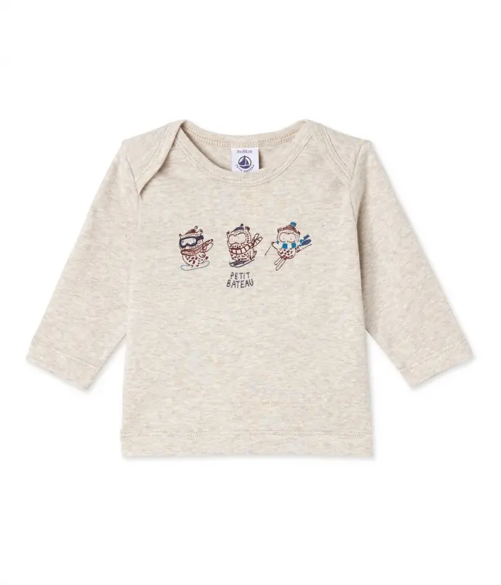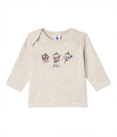 Футболка з довгими рукавами для хлопчика, оздоблена "американським" вирізом, який дозволить переодягати малечу швидко та комфортно. Футболка має чудовий різнокольоровий малюнок на грудях. Матеріал: 100% бавовна.