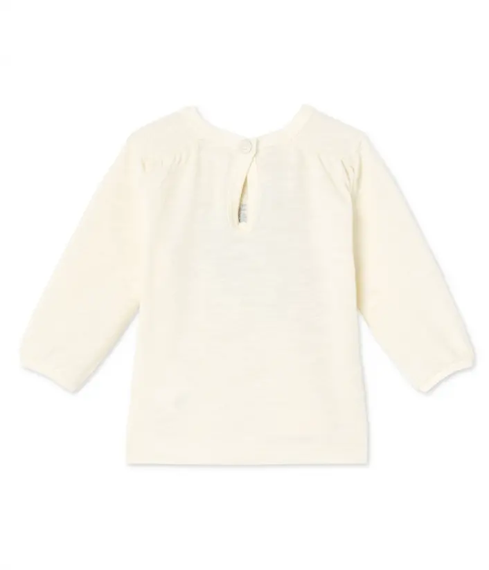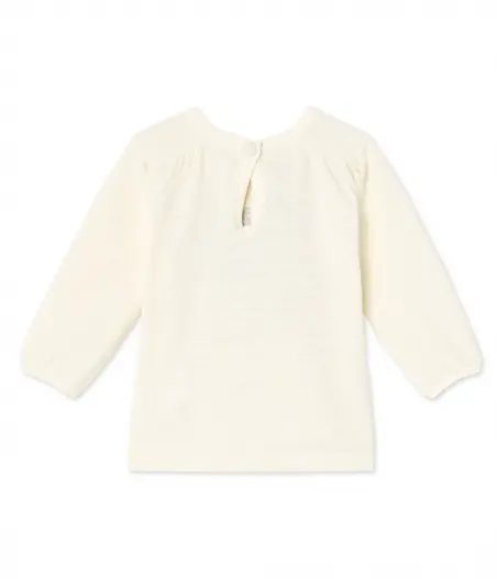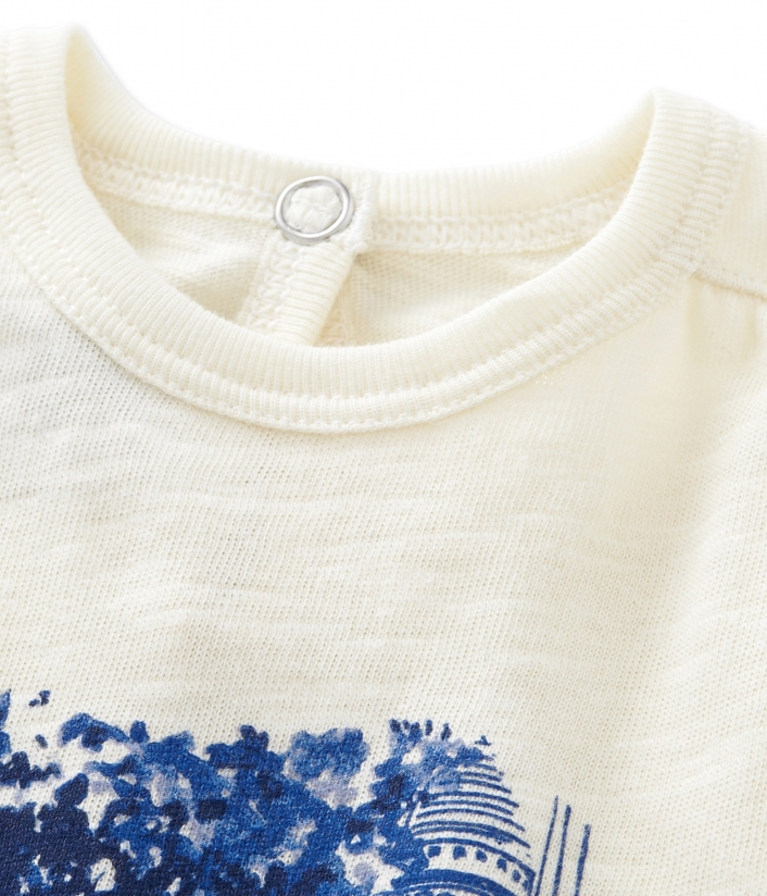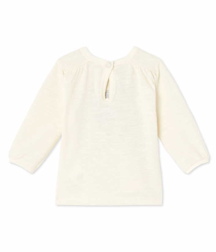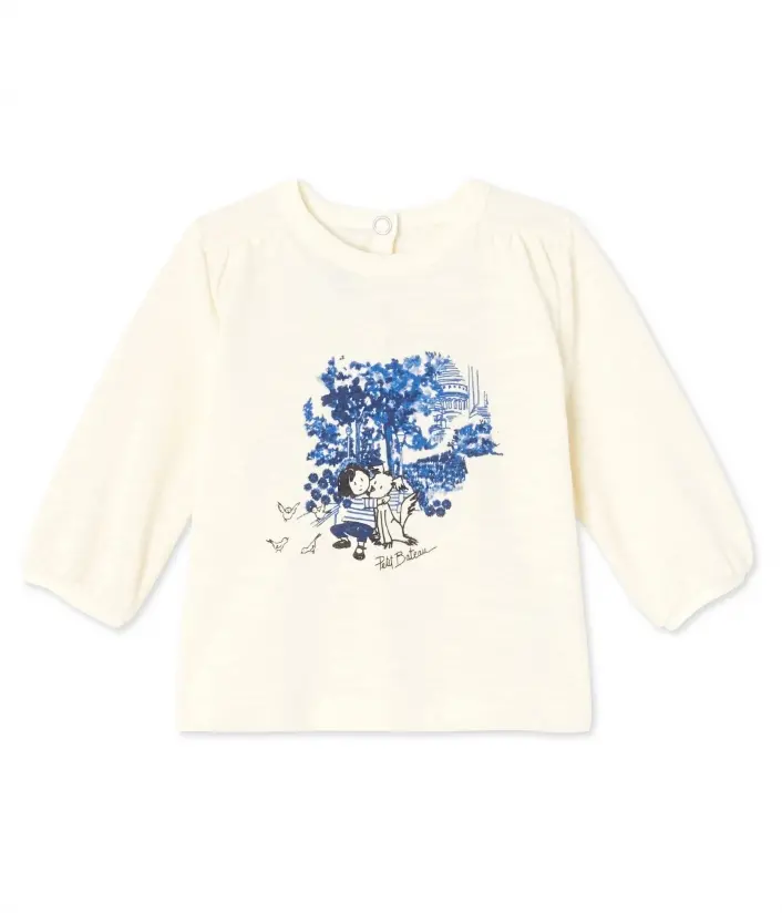 Футболка с длинными рукавами для девочки, украшена чудесным рисунком и декорирована сборками на плечах. Застегивается на кнопку на спинке. Материал: 100% хлопок.
