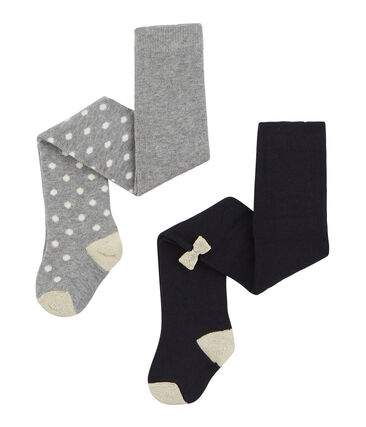Две пары колготок для девочки. Одна пара украшена горошком, вторая - милым бантиком. Состав: 76% хлопок, 22% полиамид, 2% эластан / 72% хлопок, 21% полиэстер, 3% вискоза, 2% эластан, 1% полиамид, 1% фибра