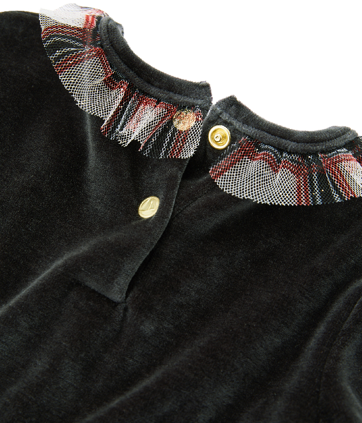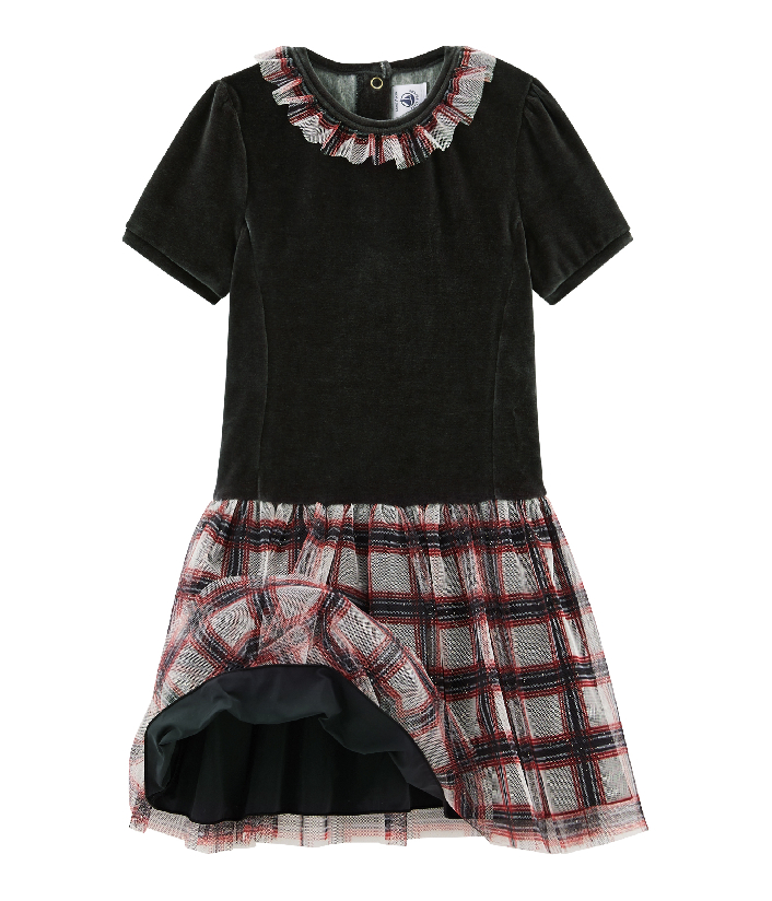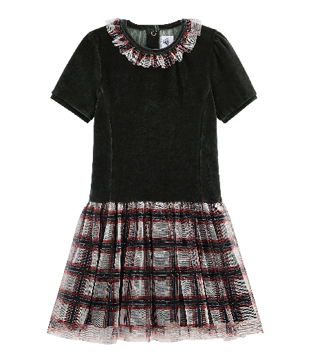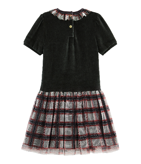 Платье с короткими рукавами. Элегантный воротник и пышная юбка. Состав: 38% хлопок, 38% модал, 24% полиэстер / 100% полиамид