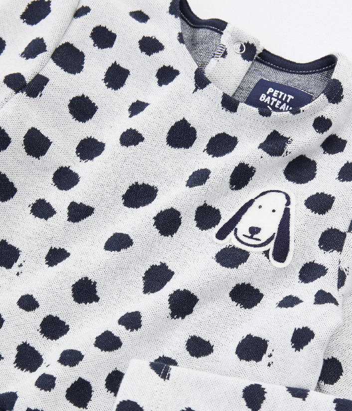 Графічний дизайнер Жан Жульєн (Jean Jullien) - талановитий французький ілюстратор, об'єднався з експертами Petit Bateau. Він придумав кілька анімаційних персонажів, а дизайнери Petit Beteau зробили з них нашивки. Впевнені, цікавий дизайн сукні приверне увагу оточуючих. Склад: 100% бавовна