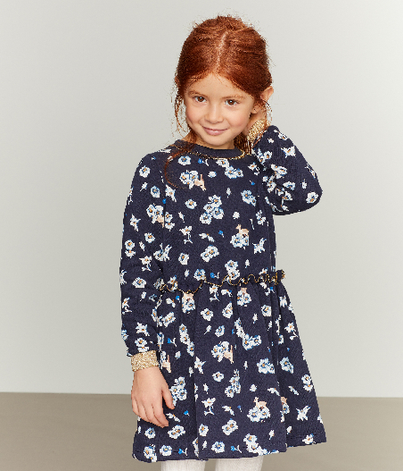 Трикотажное платье с рисунком цветочков и олененка. Контрастная окантовка придает особенный шарм изделию. Пышная юбка не сковывает движений. Ощущайте свободу и комфорт в платье от Petit Bateau. Состав: 100% хлопок/ 49% хлопок, 31% вискоза, 17% полиэстер, 3% эластан