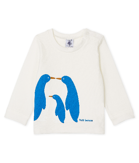 Футболка з принтом пінгвінчиків. Збоку на плечі застібка на кнопочки для зручнішого перевдягання. Склад: 100% бавовна