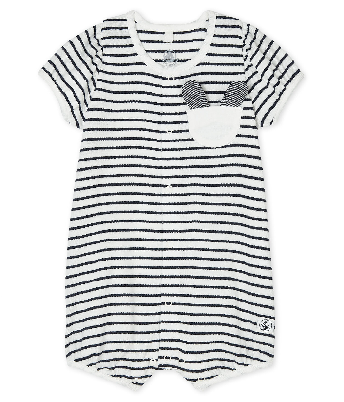 Чудовий вибір для прогулянок влітку. Дизайн комбінезону традиційно виповнений у смужку, а декорований милою кишенею з вушками. Рукава виробу у формі фонарика, що надає йому легкості та шарму. Прогулянки у зручному одязі будут приємнішими для дитини. Одяг виготовляється з органічної бавовни. Якість для Petit Bateau передусім! Склад: 100% бавовна