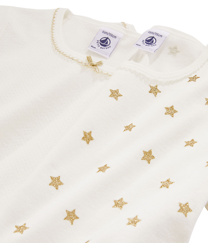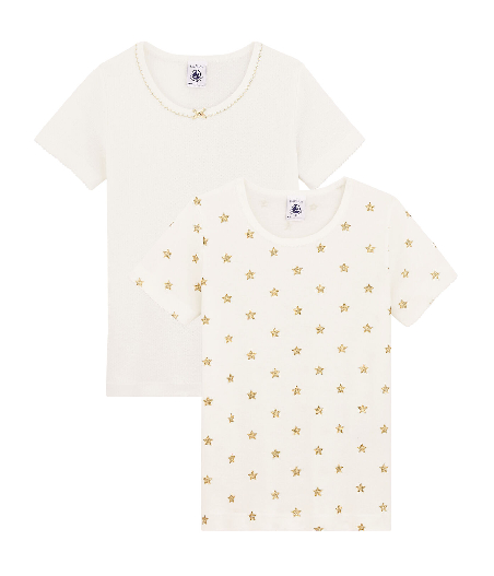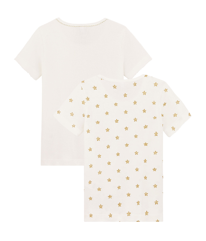 У комплекті дві футболки - однотонна з бантиком, з принтом зірочок. Склад: 100% бавовна