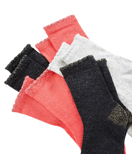 У комплекті п'ять пар різнобарвних шкарпеток. Довжина стопи: 23/26 = 14,6-16,1 см; 27/30 = 17,2-18 см; 31/34 = 19,6-21,3 см; 35/38 = 22,8-23,8 см. Склад: 81% бавовна, 17% поліестер, 2% еластан / 67% бавовна, 29% поліамід, 4% еластан