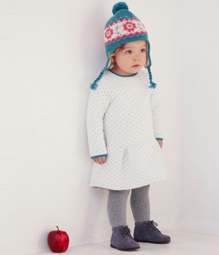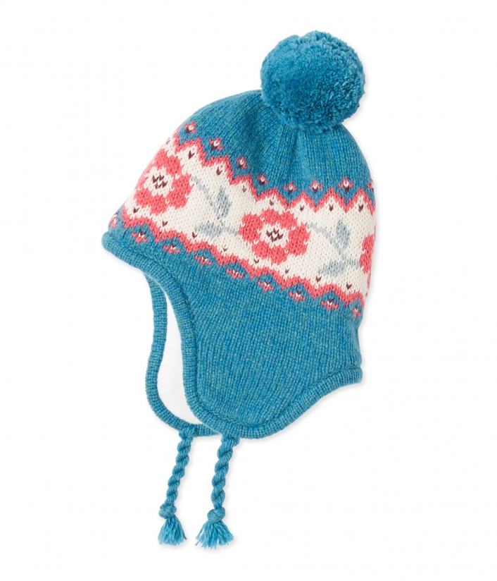 Шапка для дівчинки з гарним квітковим візерунком, оздоблена помпоном. Підкладка цієї шапки виготовлена з флісу для надання більшого комфорту та тепла. Матеріал: 62% вовна, 38% поліамід.