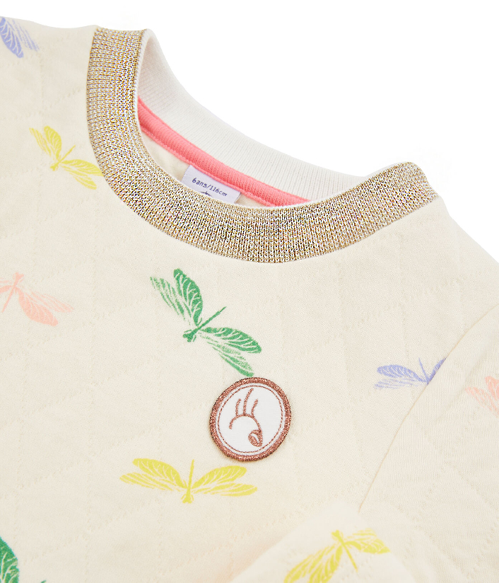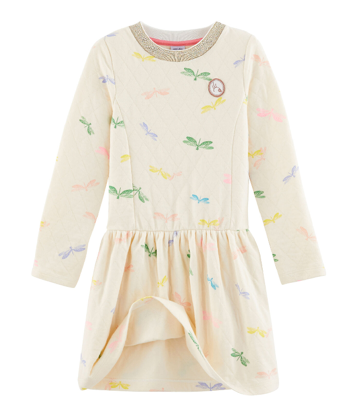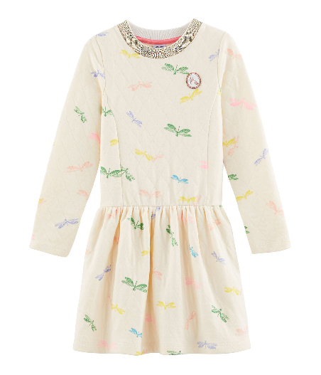 Трикотажне плаття з довгими рукавами. Горловина виробу декорована золотистою окантовкою, що надає сукні додаткового шарму. Склад: 92% бавовна, 8% поліамід / 75% бавовна, 16% віскоза, 9% поліамід