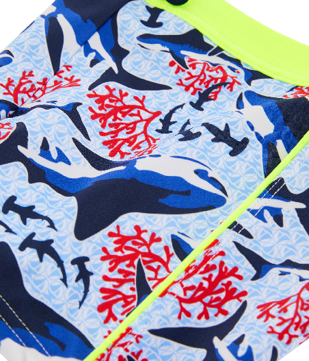 Плавки виготовлені з перероблених матеріалів, які гарантують захист від ультрафіолетового випромінювання (UPF50+). Стандарт UPF 50+ (фактор захисту від ультрафіолету) забезпечує захист ваших дітей від 95% UVA- та UVB-променів. Це найвищий фактор захисту від сонця. Склад: 78% поліестер, 22% еластан / 100% поліестер