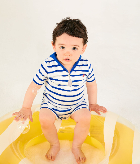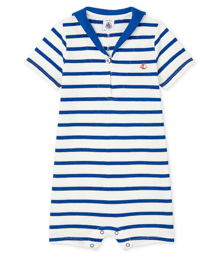Дизайн натхненний морською тематикою. Трикотажний комбінезон прикрашений вітрильником та смужкою. Чудовий вибір на кожний день. Склад: 100% бавовна