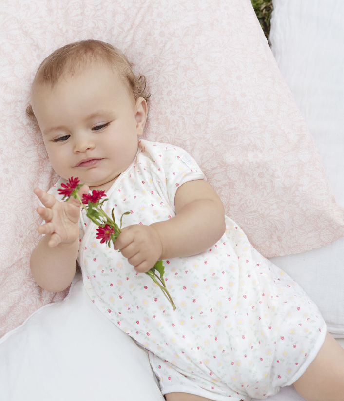 Дизайн трикотажного комбінезону натхненний природою. Застібка на кнопочки полегшує перевдягання. Чудовий вибір на кожний день. Склад: 100% органічна бавовна
