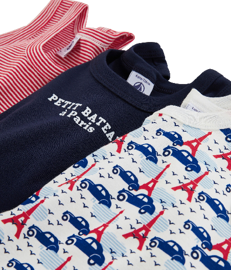 У комплекті три майки з різними принтами. Матеріал виробу виготовлений зі сертифікованої бавовни, що надає впевненості в її якості та безпечності. Склад: 100% бавовна