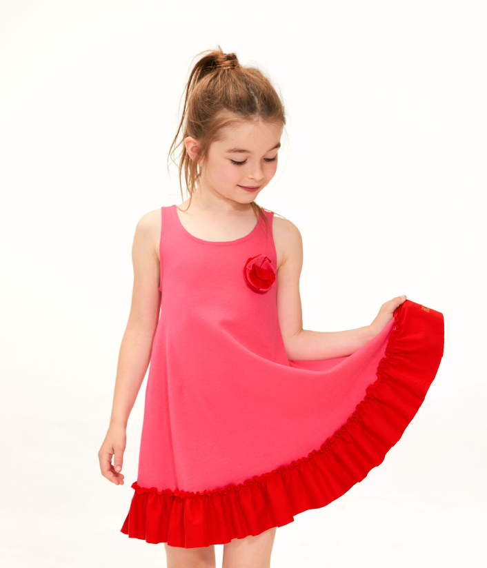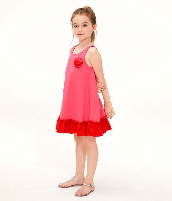 Рожева сукня з білим бантом