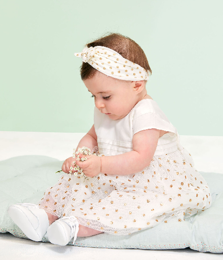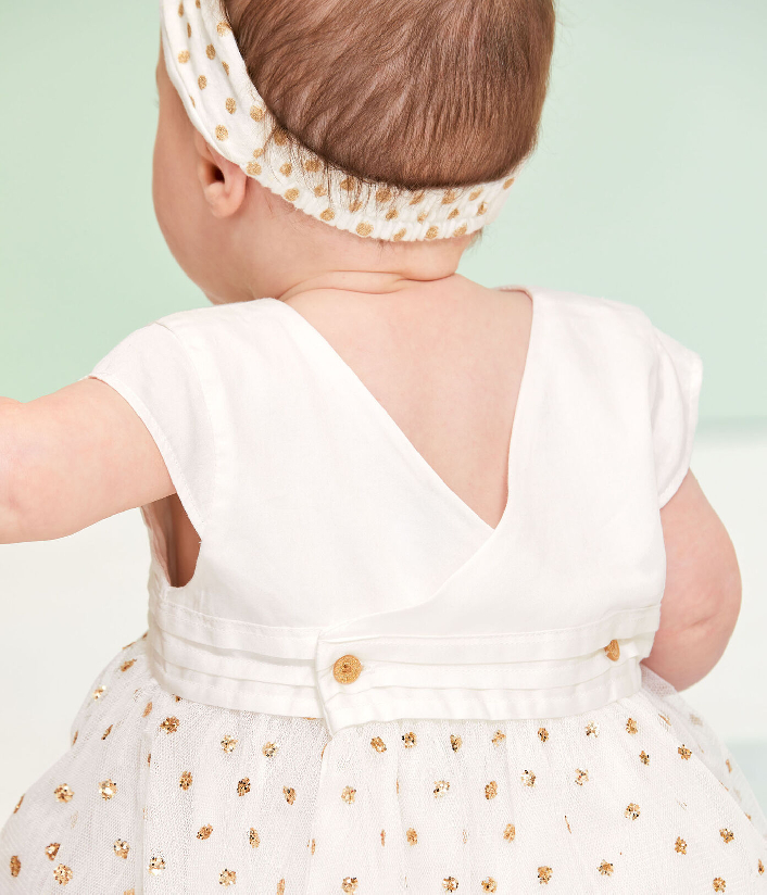 Вишукана дитяча сукня прикрашена горошком. Склад: 100% бавовна / 100% поліестер / 100% бавовна