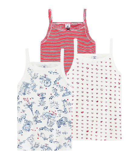 У комплекті три майки на бретелях для дівчинки. Відомо, що майка - це основа гардеробу, тому вона завжди потрібна. Матеріал виробу виготовлений зі сертифікованої бавовни, що надає впевненості в її якості та безпечності. Склад: 100% бавовна