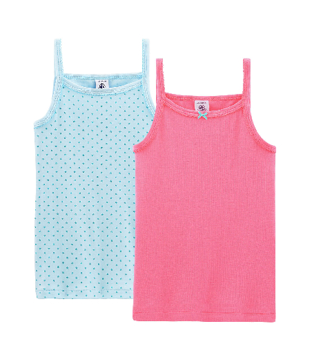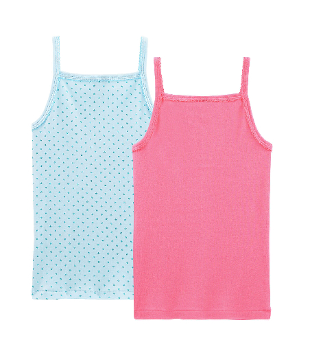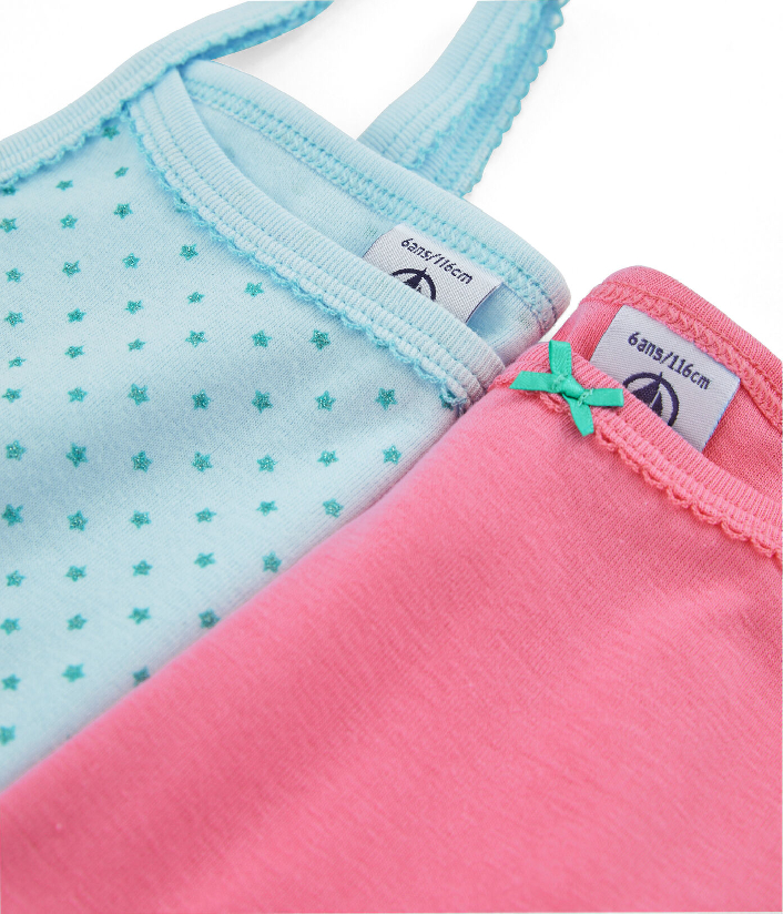 У комплекті дві майки на бретелях для дівчинки. Відомо, що майка - це основа гардеробу, тому вона завжди потрібна. Матеріал виробу виготовлений зі сертифікованої бавовни, що надає впевненості в її якості та безпечності. Склад: 100% бавовна