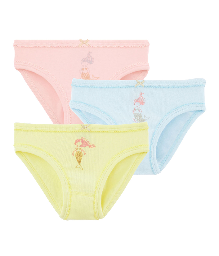 Яскраві різнокольорі трусики з принтом русалочки. Комбінуйте з футболками бренду Petit Bateau. Склад: 100% бавовна