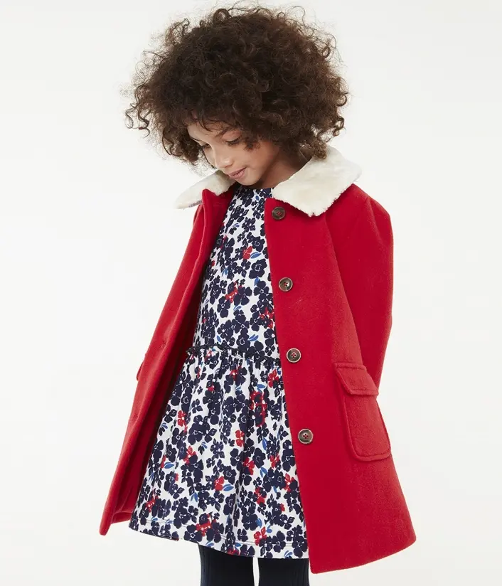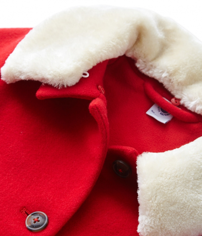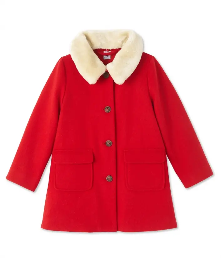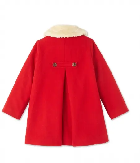 Вовняне пальто для дівчинки має вишуканий вигляд, завдяки А-силуету та гарним деталям: білий комірець та складка на спині. Комірець можна зняти за бажанням. Для надання комфорту та тепла, підкладка пальто зроблена з м'якого мікро-флісу. Матеріал: 80% вовна, 20% поліамід; підкладка - 100% поліестер.