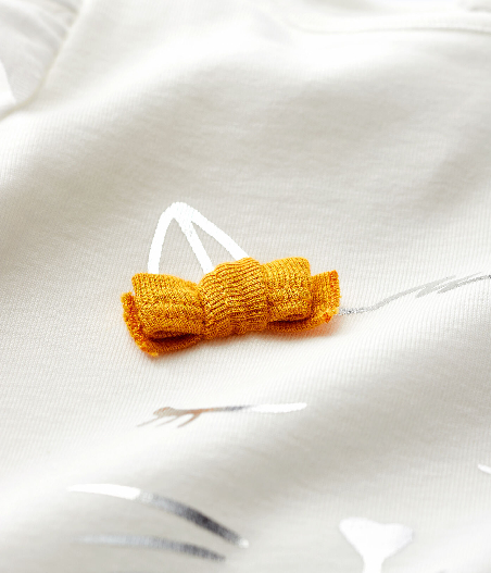 Блуза с длинными рукавами украшена рисунком котика и милым трикотажным бантиком. Застежка на кнопочку сзади. Состав: 100% хлопок