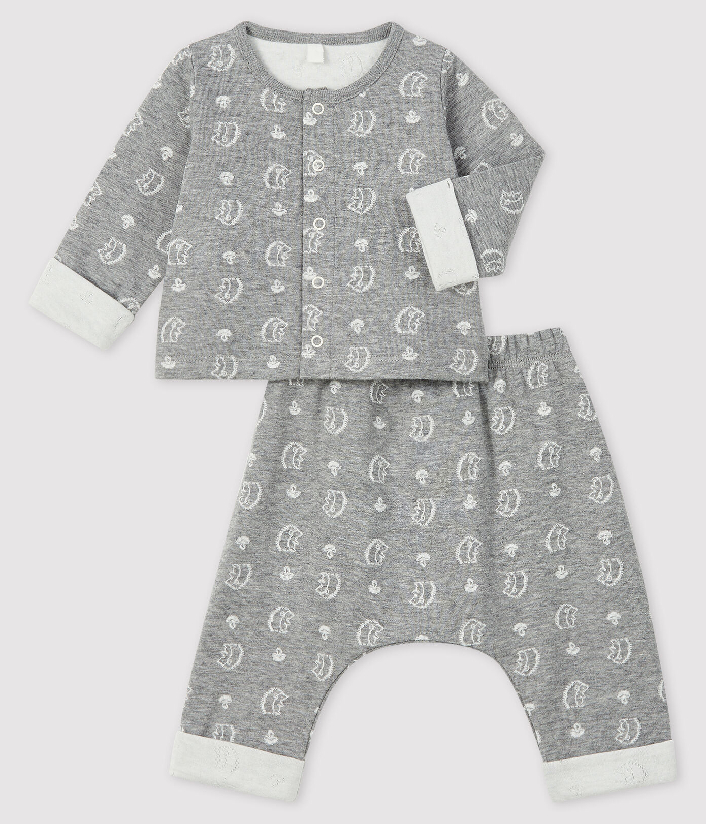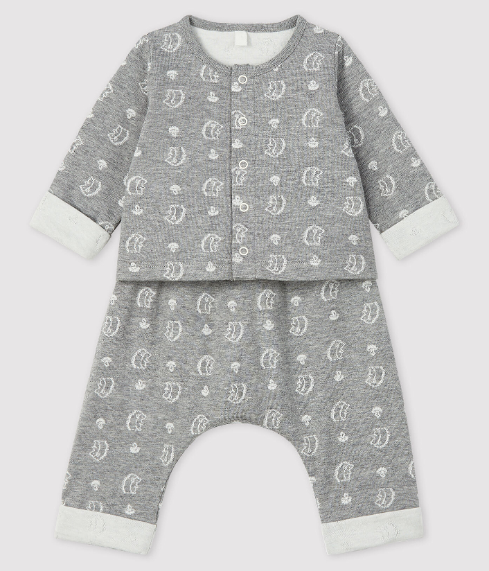Кардиган и брюки двойной вязки с принтом ежиков. Состав: 100% хлопок